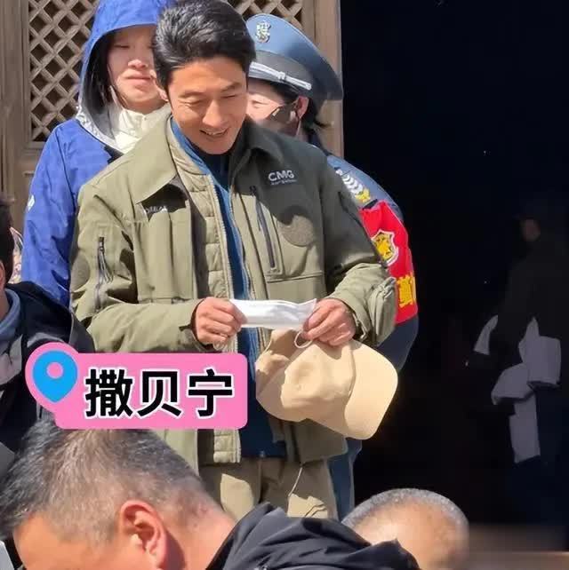 景区里不少游客认出撒贝宁,纷纷上前想合影,他大多都礼貌配合。